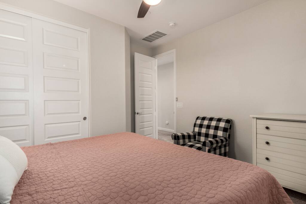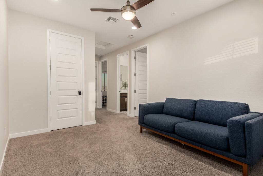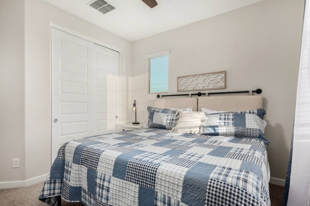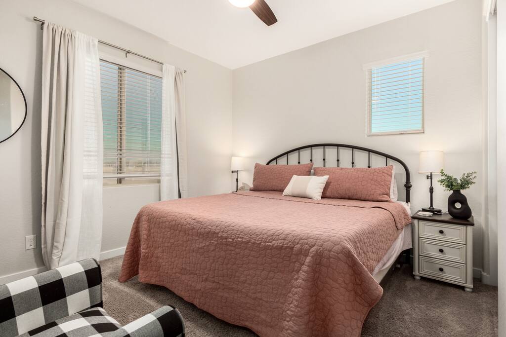 Two-story single-family home designed for extended stays. ✔️ 3 King Beds ✔️ WiFi, AC, Washer/Dryer ✔️ 2.5 Baths, Loft, Garage ✔️ Shared Backyard Fire Pit & Patio (shared with on-site casita guest — may be booked by other travelers) ✔️ EV Charging ✔️ Peaceful neighborhood near freeway access Note: Home shares one wall and the backyard with a separate private-entry casita. Casita guests may be present during your stay. Perfect for: Families, groups, business travelers, or long-term stays.
