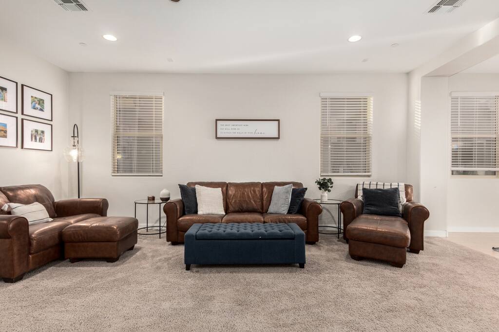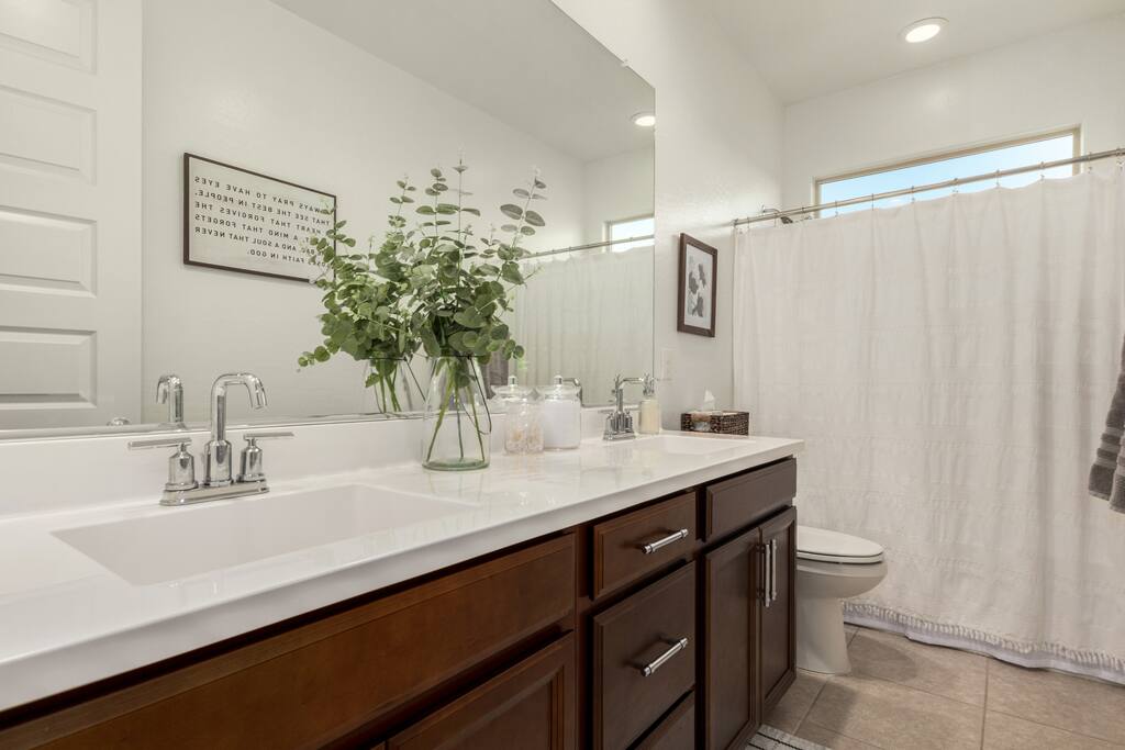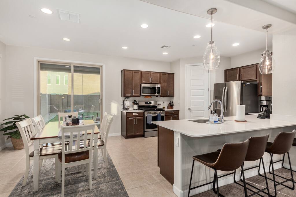 Spacious 3-bedroom, 2.5-bath home in Mesa’s resort-style Cadence at Gateway community. Perfect for families, business travelers, or long-term guests looking for comfort, space, and modern convenience. 🔌 EV Charging Available An EV charging outlet is available outside the home and may be used by guests for a small additional fee: ✔️ $10/day or $50/week (7 days) 🏡 Cadence Community Amenities Access Access to Cadence community amenities (pools, gym, clubhouse, etc.) is only available for stays of 30 days or longer, pending HOA approval. You’ll have full access to the main house, including: ✔️ 3 bedrooms ✔️ 2.5 bathrooms ✔️ Fully equipped kitchen and living room ✔️ Shared backyard with fire pit and patio 📍 Location Highlights Nestled in a quiet East Mesa neighborhood near Mesa Gateway Airport, this home offers a perfect balance of peace and proximity to grocery stores, restaurants, parks, schools, and local favorites such as Eastmark Great Park and nearby breweries. 🚗 Getting Around Having a car is recommended. You're minutes from Loop 202 and US-60, offering quick access to Gilbert, downtown Mesa, and the airport. Uber/Lyft also operate regularly in the area. ✔️ 2-car garage available for guest use ✔️ No smoking inside ✔️ Quiet hours after 10 PM ✔️ Long-term stays welcome ✔️ EV charging (220v outside driveway)