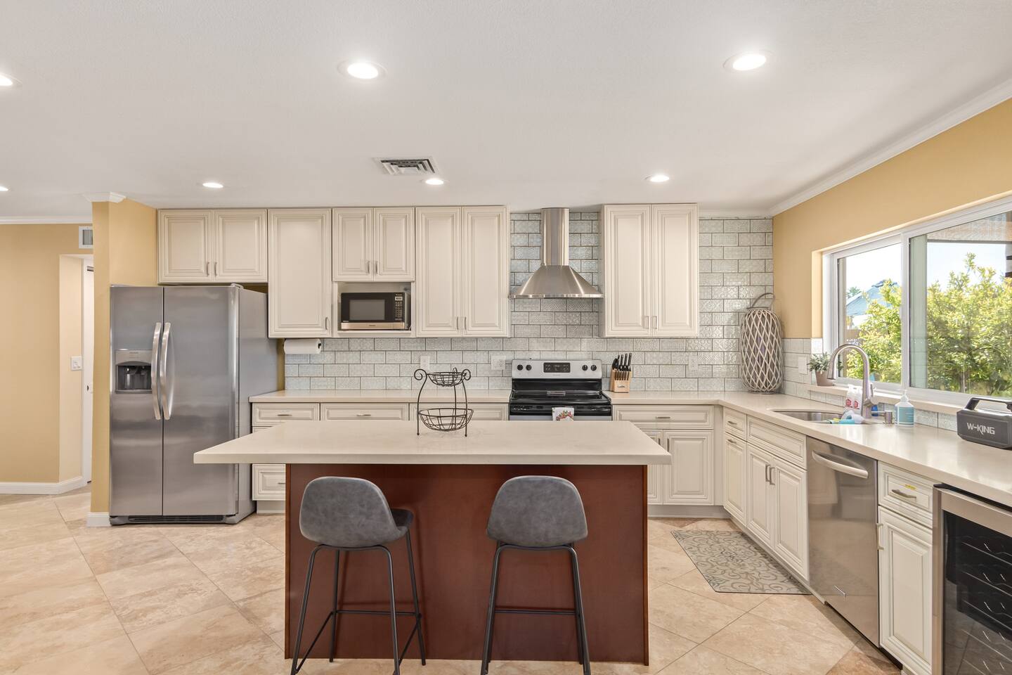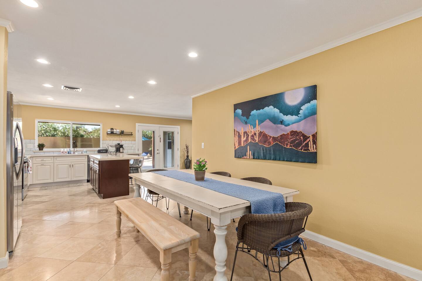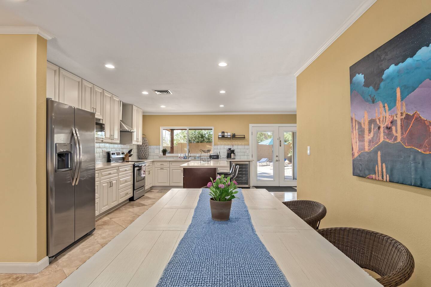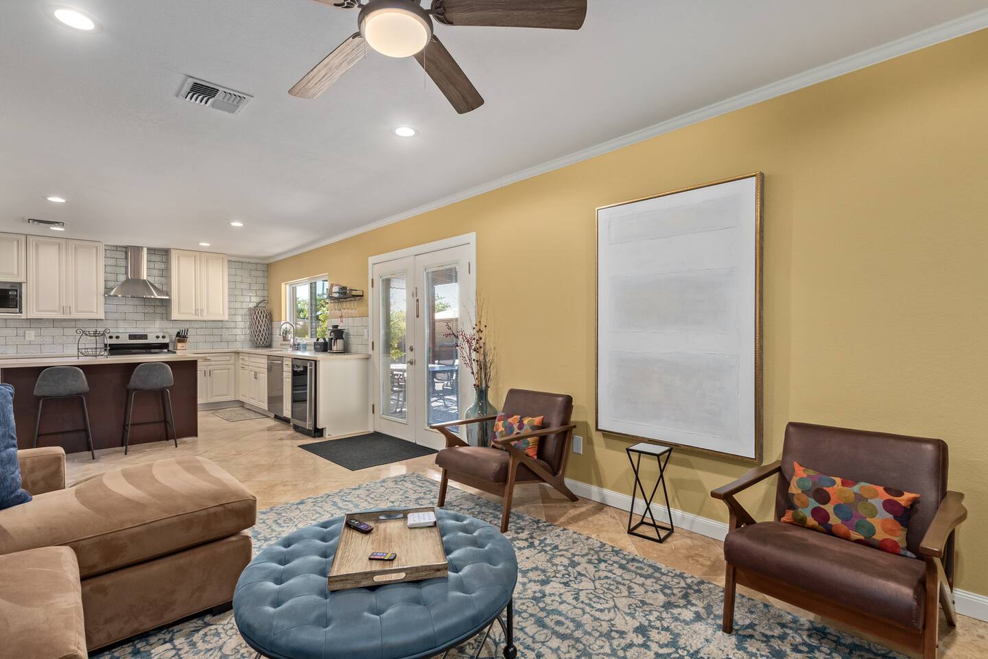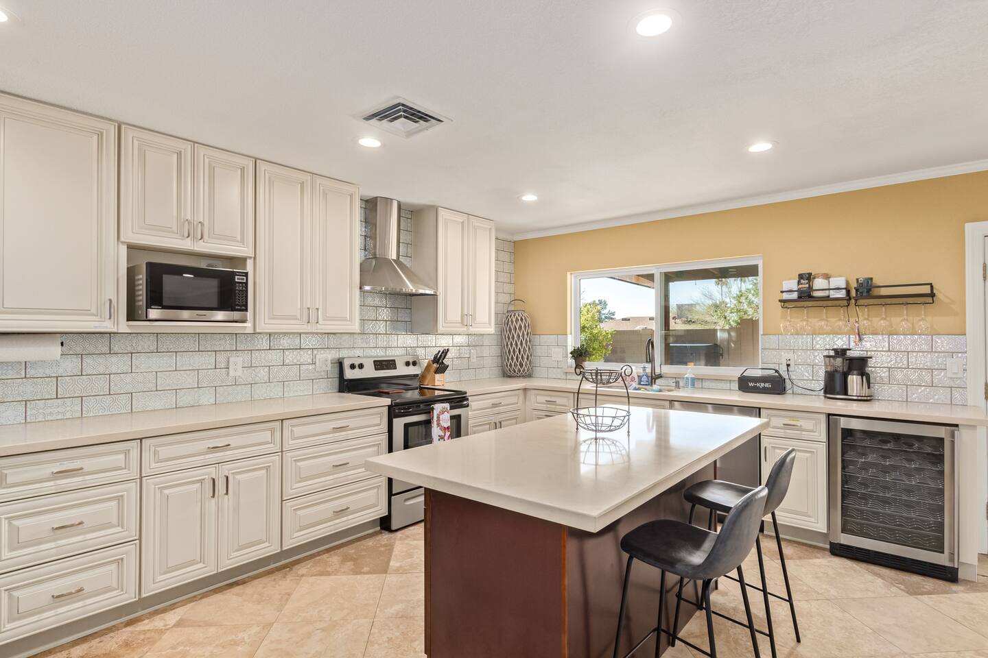 Walking through the door, you'll feel right at home. This residence and its private backyard offer a string of wow moments to make your stay unforgettable. Flooded with sunlight through dual-pane windows, the layout flows beautifully, accented by stylish tile and wood floors. The kitchen, a true highlight, boasts a spacious island with a breakfast bar and a wine fridge for your enjoyment. You can retreat to the primary bedroom and discover a generous walk-in closet equipped with upscale organizers, making it easy to settle in. This home is perfectly adaptable to your needs, ideal for short-term getaways or extended stays, and fully furnished for your convenience. For the adventurers, South Mountain's preserve trails are just across the street, offering over 50 miles of hiking and mountain biking trails. Welcome to your perfect escape, where every day feels like a vacation. Pool Heating: ★ Extra fees apply ★ Minimum 3-night stay (can take two days to reach the desired temp) ★ Long-term stay fees negotiable